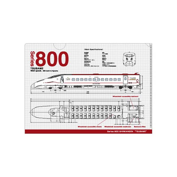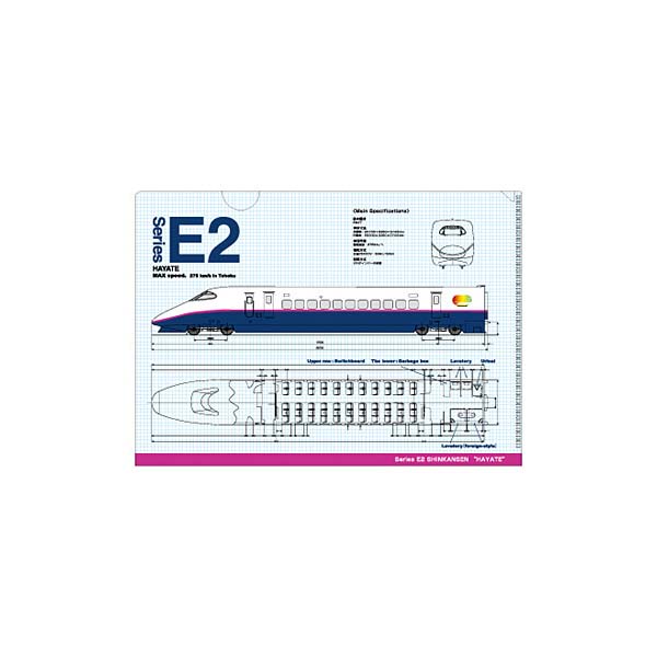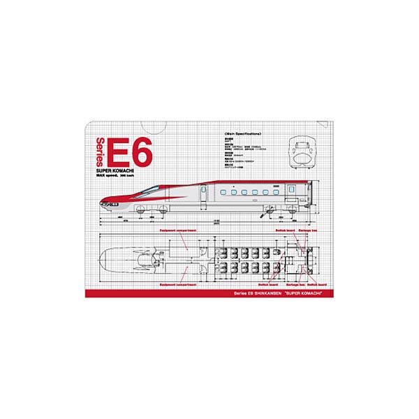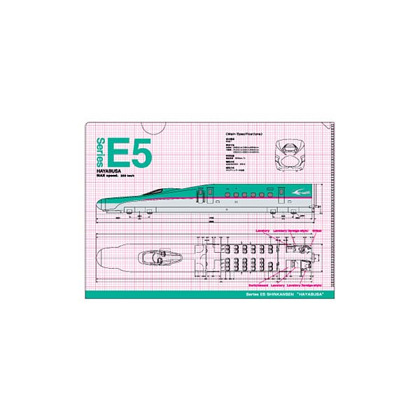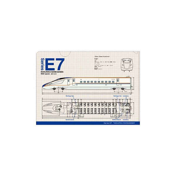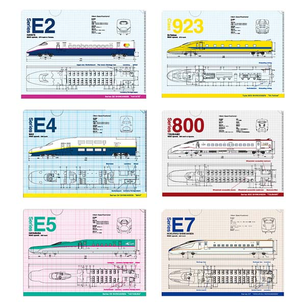~新幹線間尺~ 9款印有新幹線列車的A4 File,包括E2系新幹線 疾風號、E4系新幹線MAX、E5系新幹線隼號、E6系新幹線超級小町號、E7系北陸新幹線 光輝號、800系新幹線燕子號、923形新幹線Doctor Yellow。 A4 File 除了印有列車的樣子,還有列車內部的透視圖,是新幹線列車的鐵路迷不能錯過的文具。