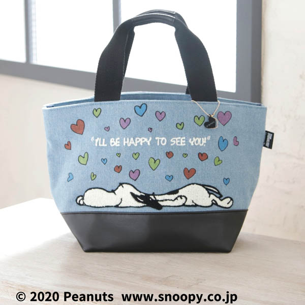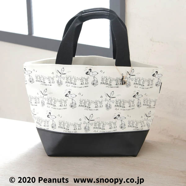 帶有可愛史努比插畫的迷你手挽袋,共兩色可選擇 (象牙色/深靛藍)。