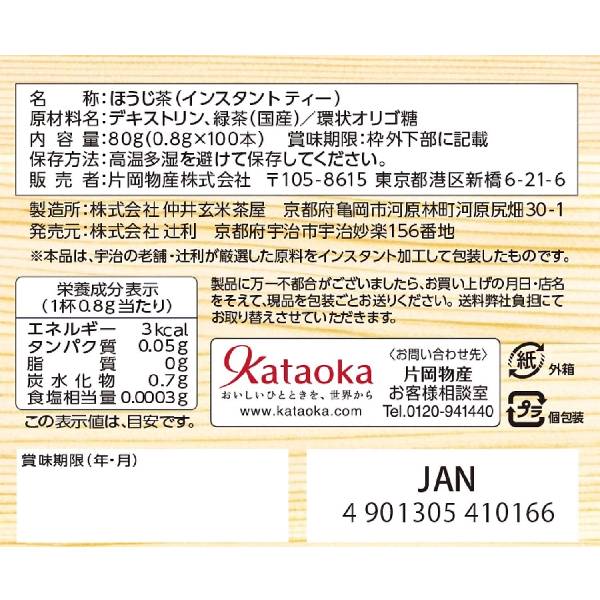 使用100%國產茶葉,醇厚香氣的焙茶,加入宇治抹茶,精心烘焙的茶具有獨特的香氣和醇厚的口感。全部使用單獨鋁包裝,一沖即可飲用,可溶解於熱水和冷水,送上最新鮮的味道。