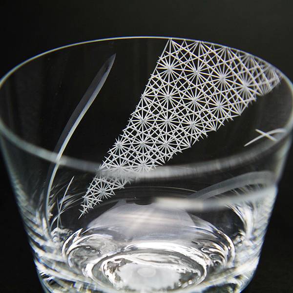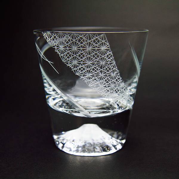 這款透明杯的特色為杯底的富士山、杯身的獨特花紋,