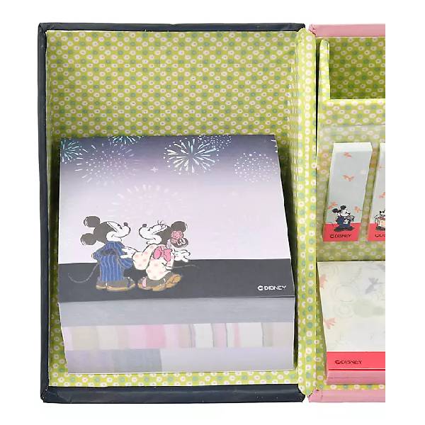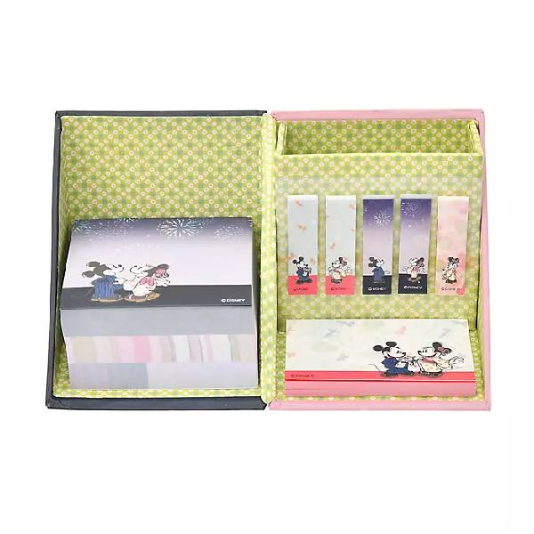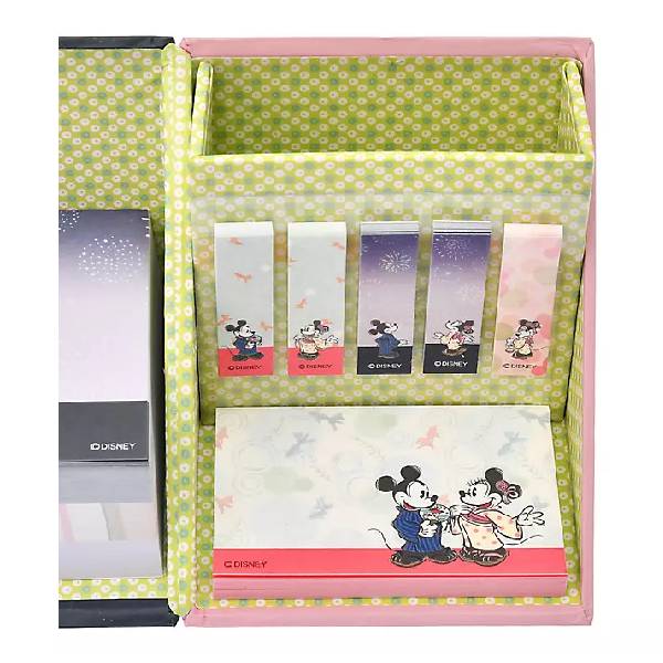 以日本夏季為主題的米奇和米妮memo紙套裝,包括筆架、多款便利貼、memo紙。
